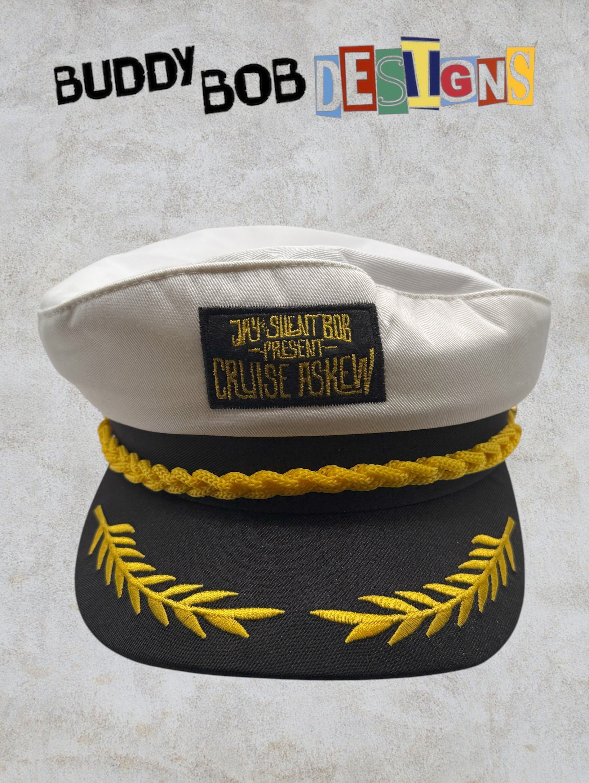 Commemorate the unforgettable voyage on the inaugural Jay & Silent Bob Cruise Askew from 2024 with this authentic and highly collectible captain's hat! This isn't just any headwear; it's a direct memento from the first-ever seaborne gathering of the View Askewniverse faithful.