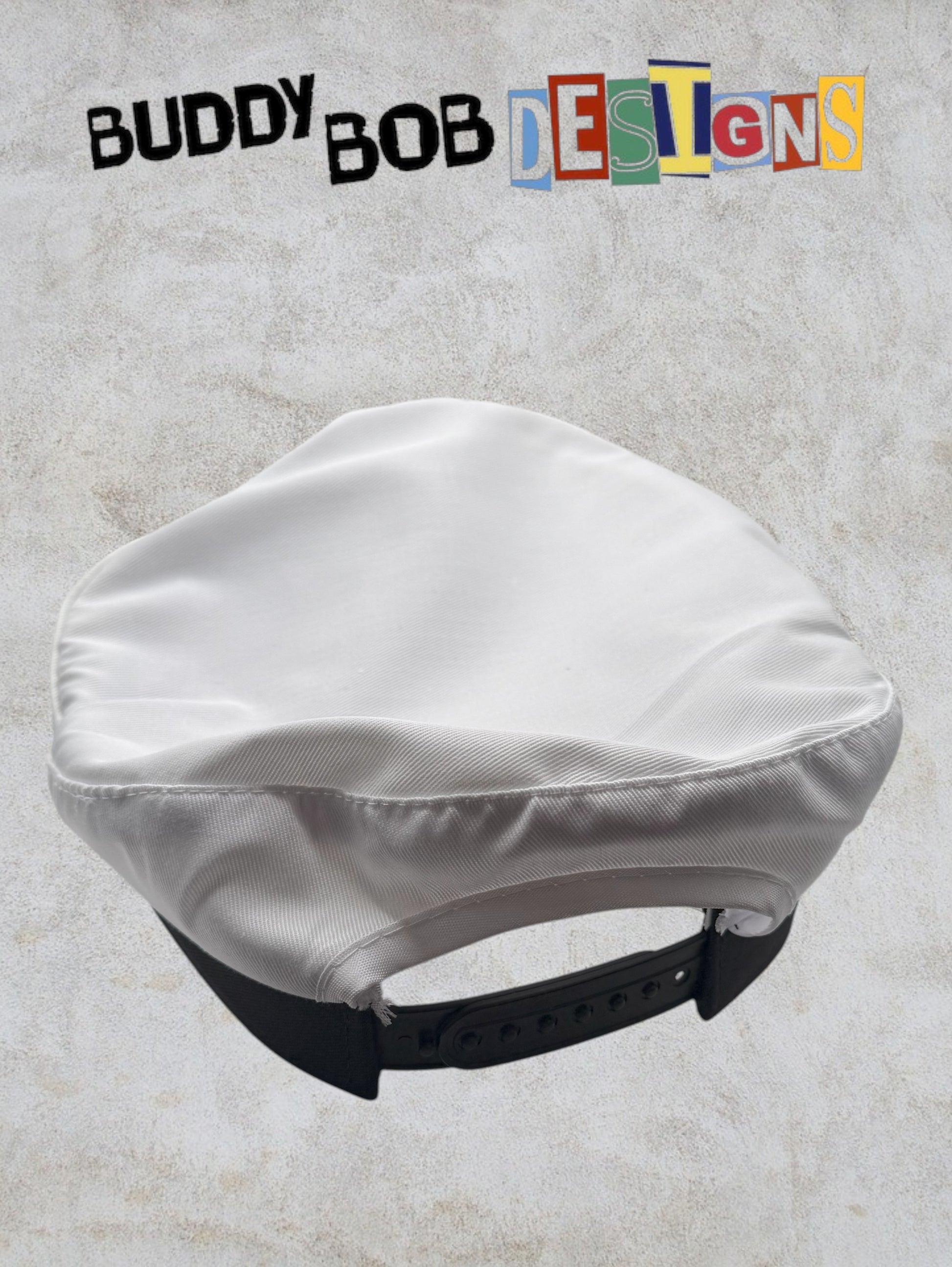 Crafted in the classic captain's hat style, this unique piece features a crisp white crown and a striking black brim adorned with elegant gold embroidered laurel leaves – perfectly befitting a true captain of the high seas (or at least, the high seas of fandom!). The vibrant gold braided cord adds a touch of nautical flair, while the comfortable and adjustable snapback closure ensures a perfect fit for any head.