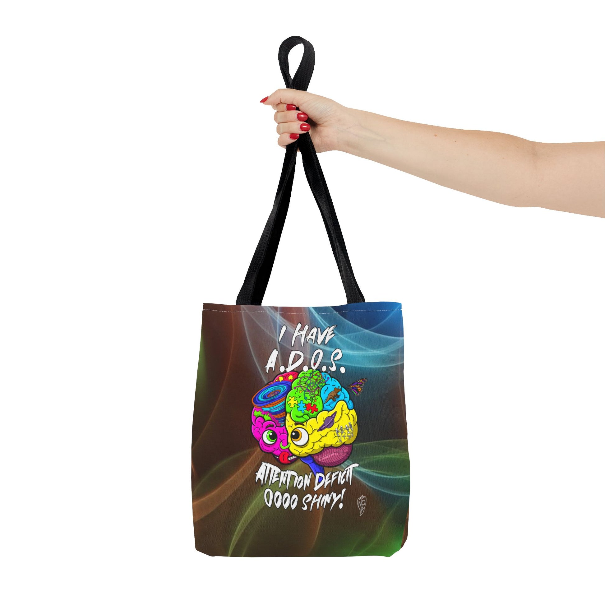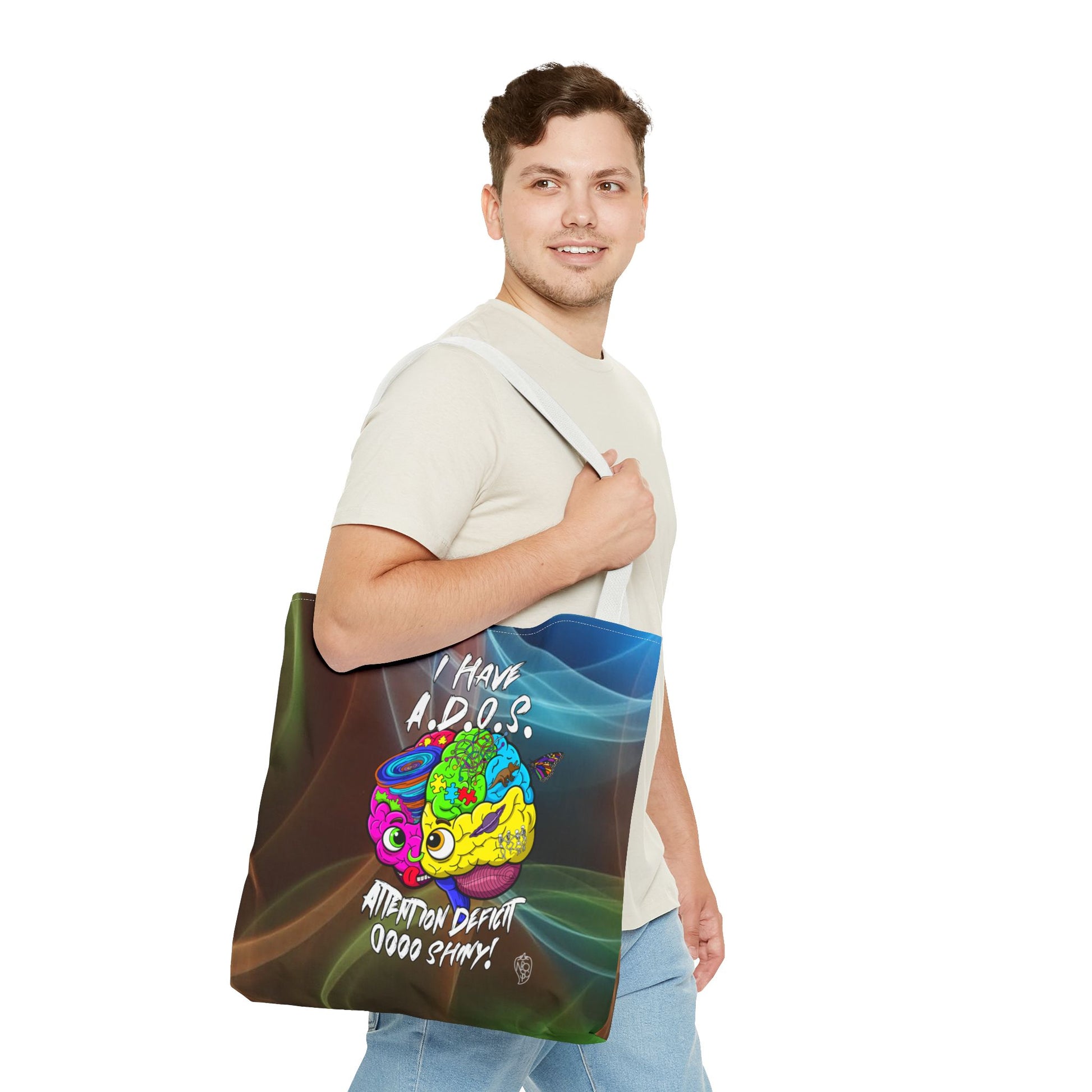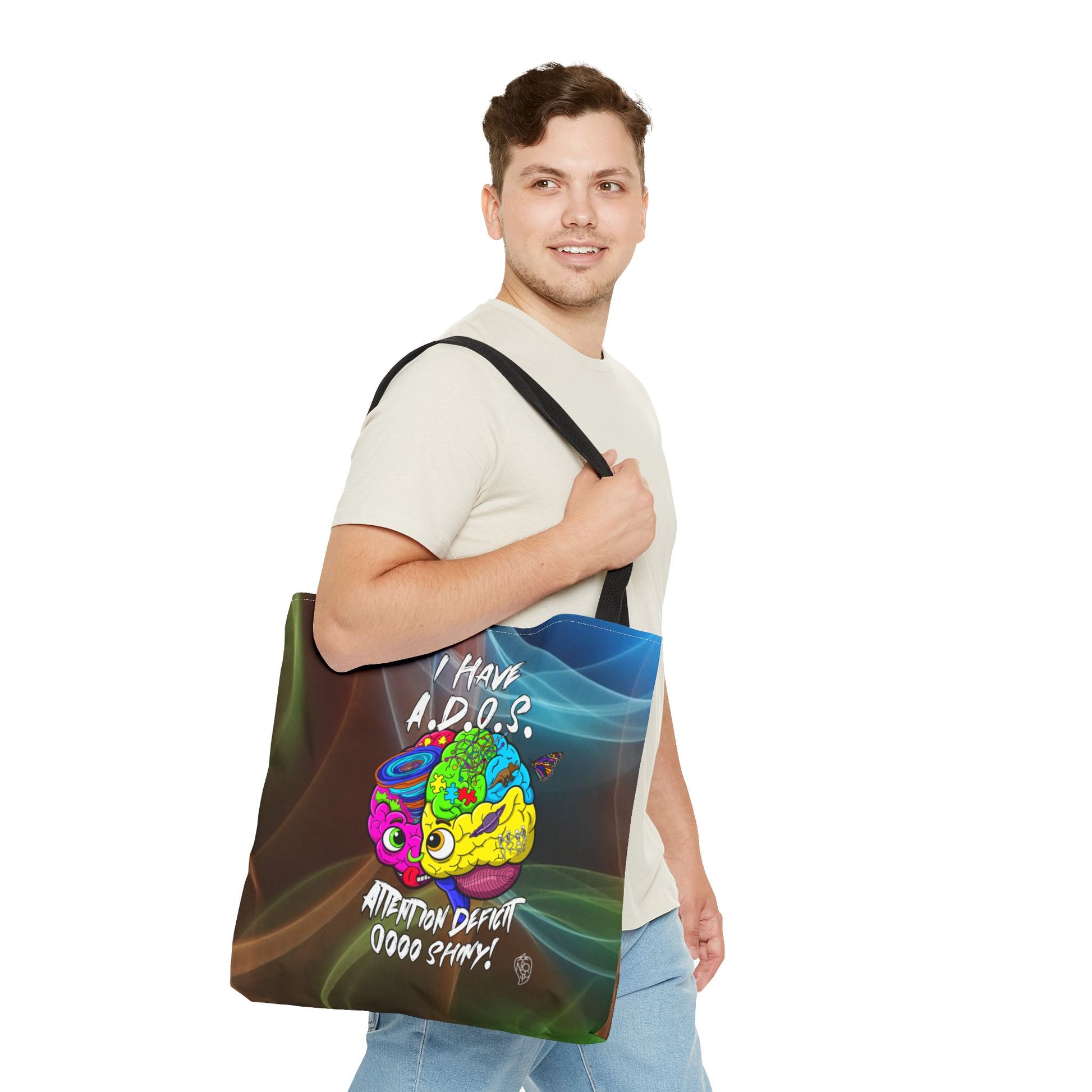 This vibrant canvas tote bag is more than just a carry-all; it's a celebration of the wonderfully unique neurodivergent mind! Featuring our iconic "I Have A.D.O.S." design printed boldly on both sides, this bag showcases a dynamic, multi-colored brain graphic bursting with creativity, puzzles, swirling thoughts, and delightful distractions.