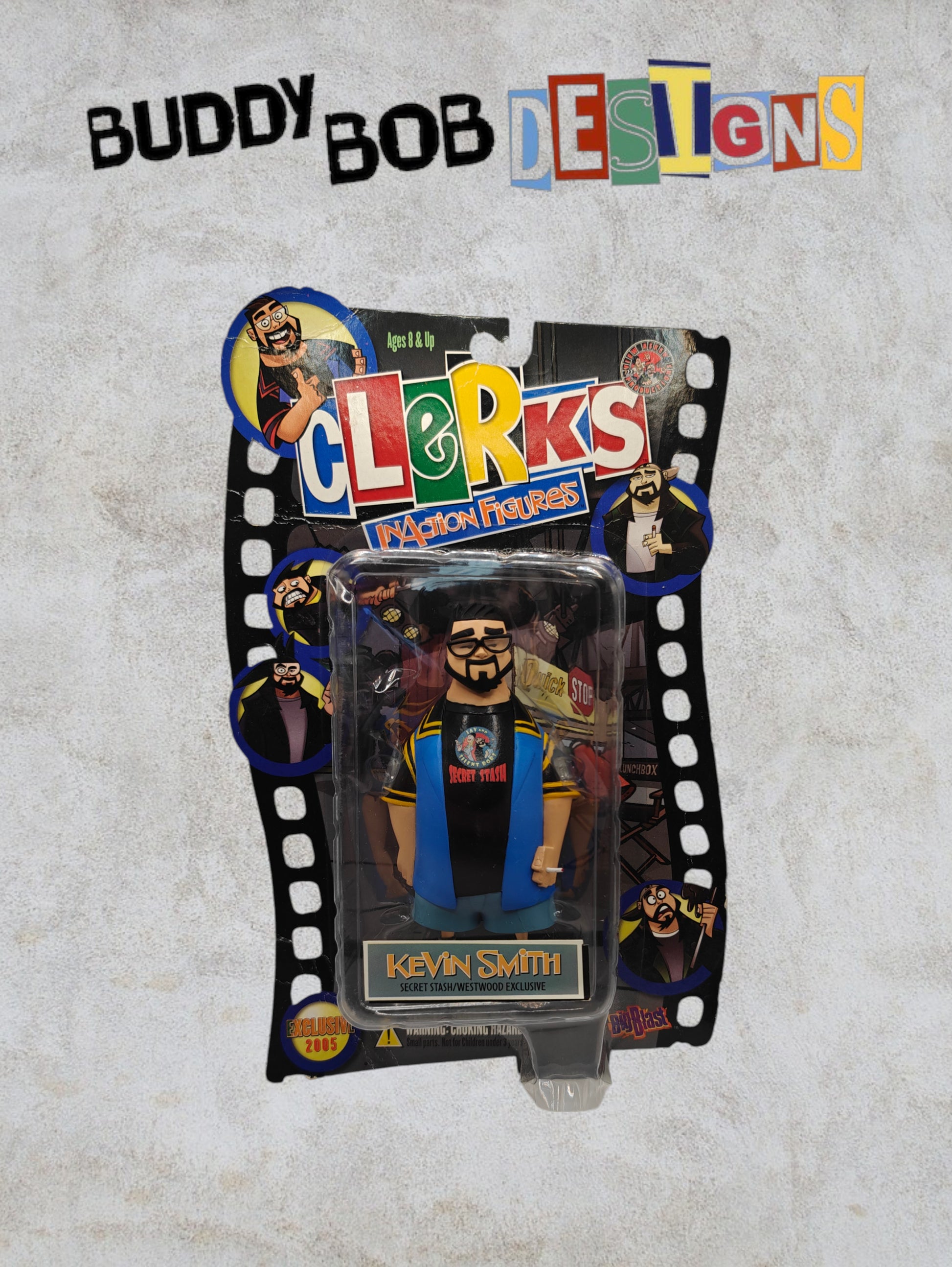 Here's your chance to own a rare piece of Kevin Smith history! This Clerks Inaction Figure features Kevin Smith in his iconic Secret Stash shirt, making it a quintessential collectible for any fan.