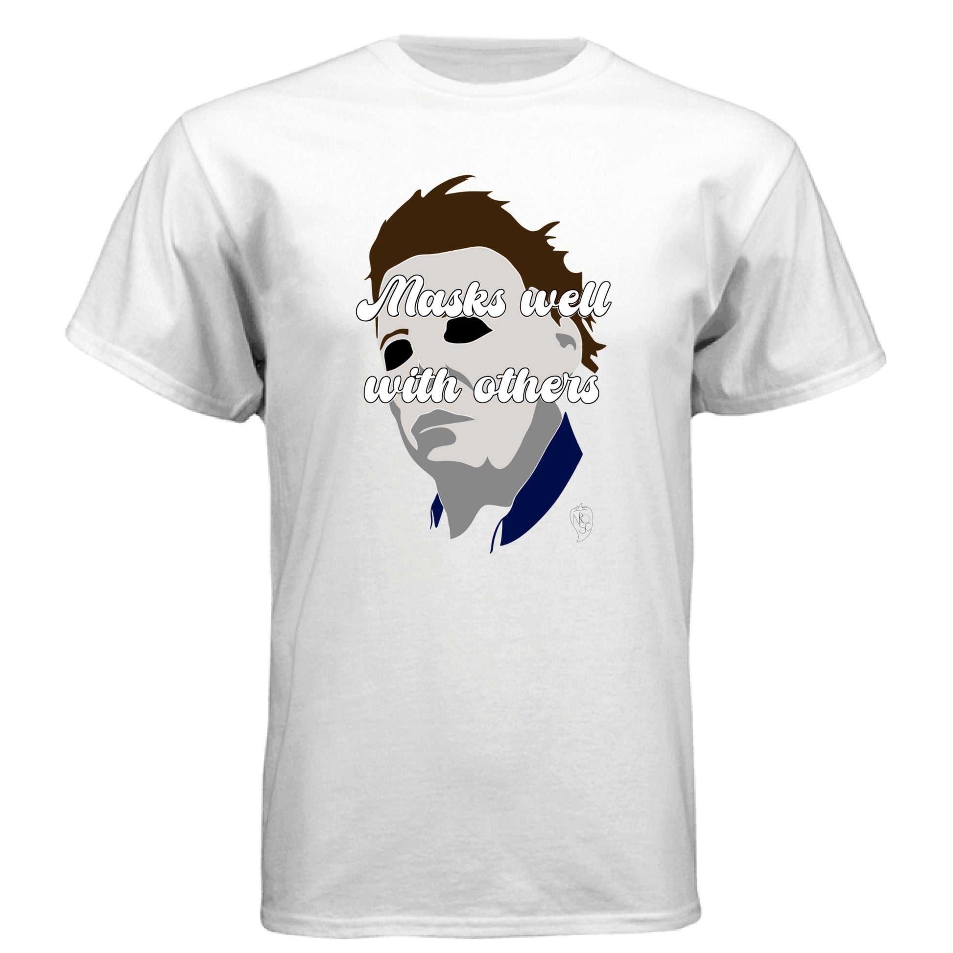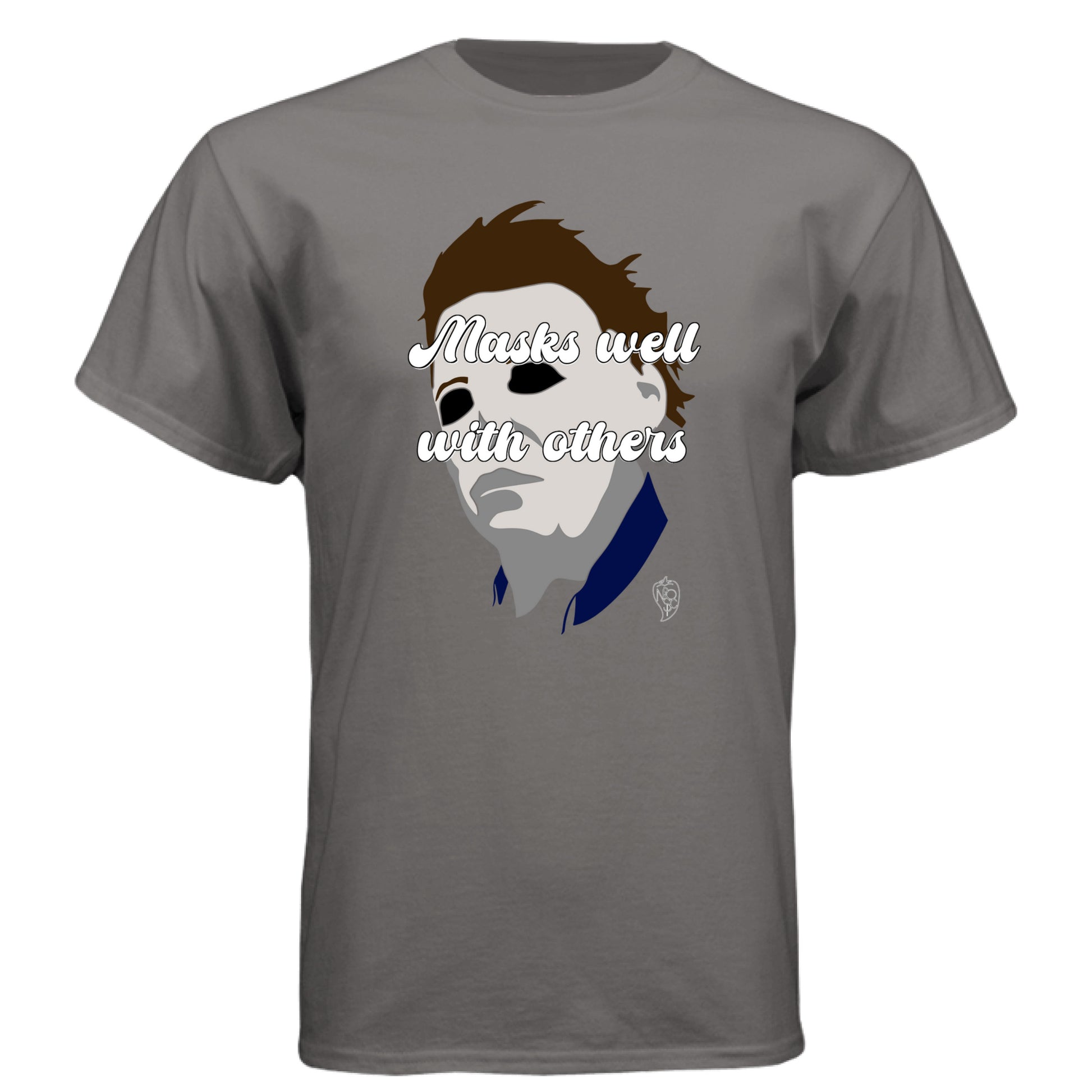 Celebrate the spooky season year round and your own unique sense of humor with the "Masks Well With Others" T-shirt!