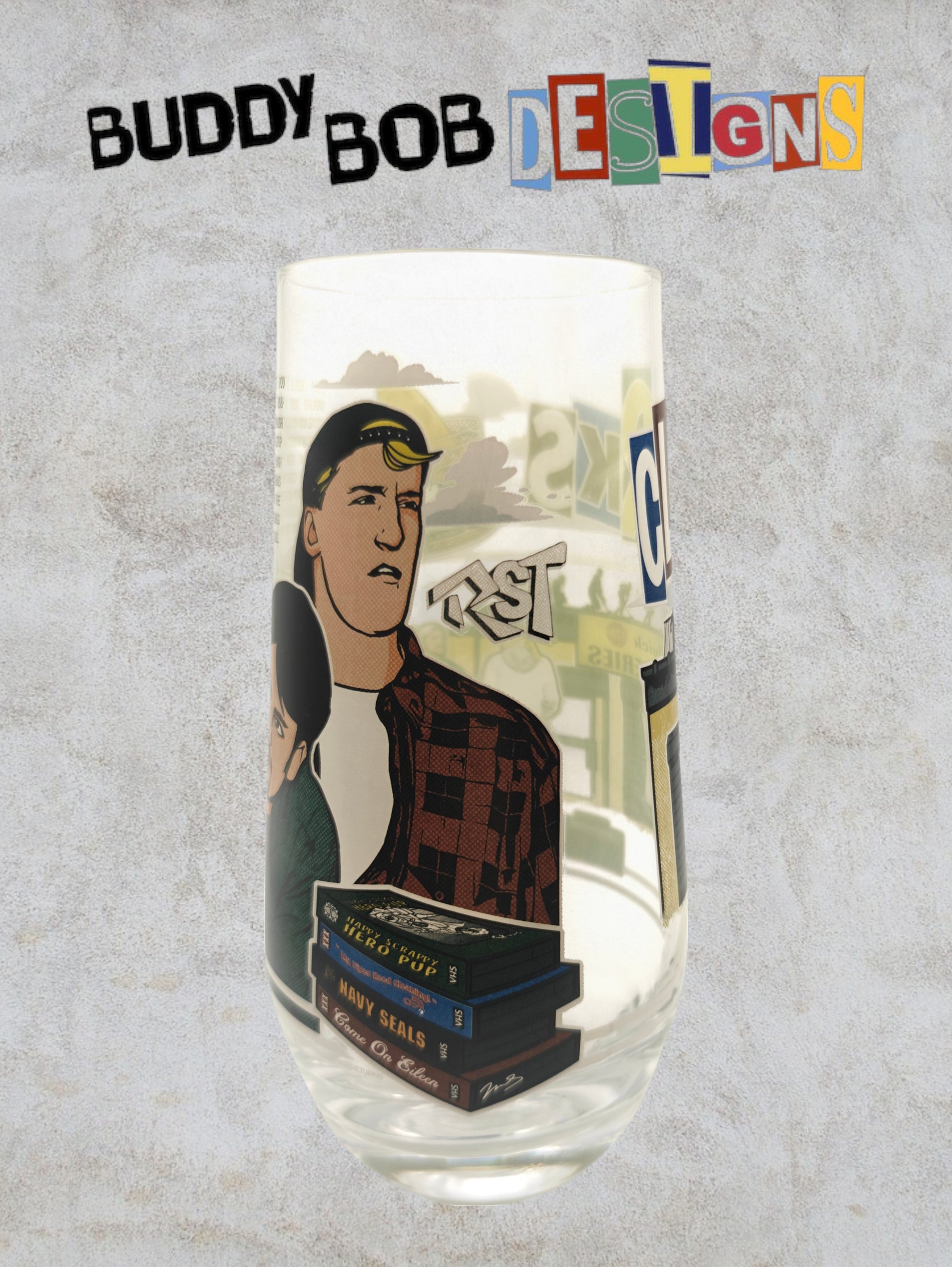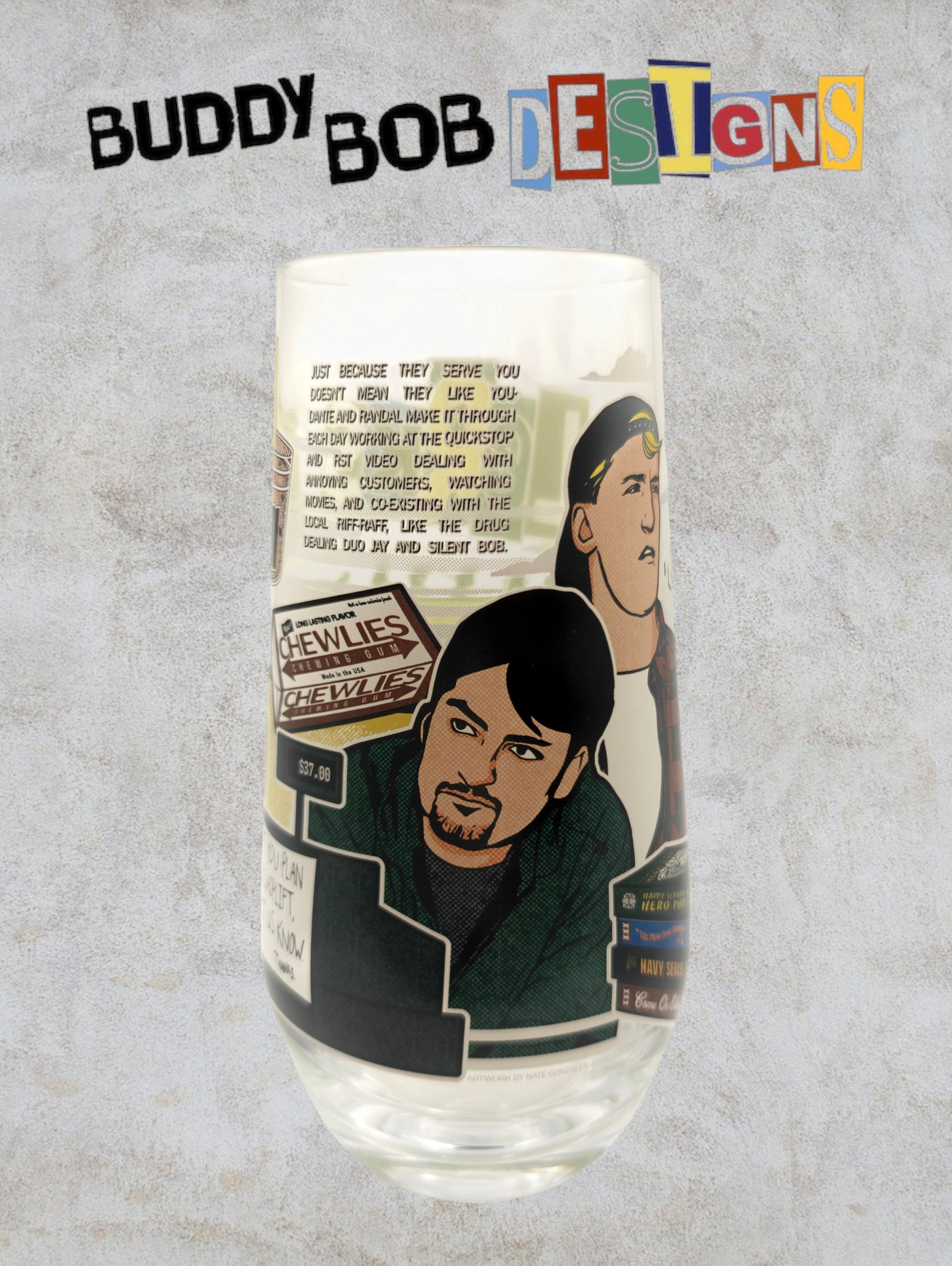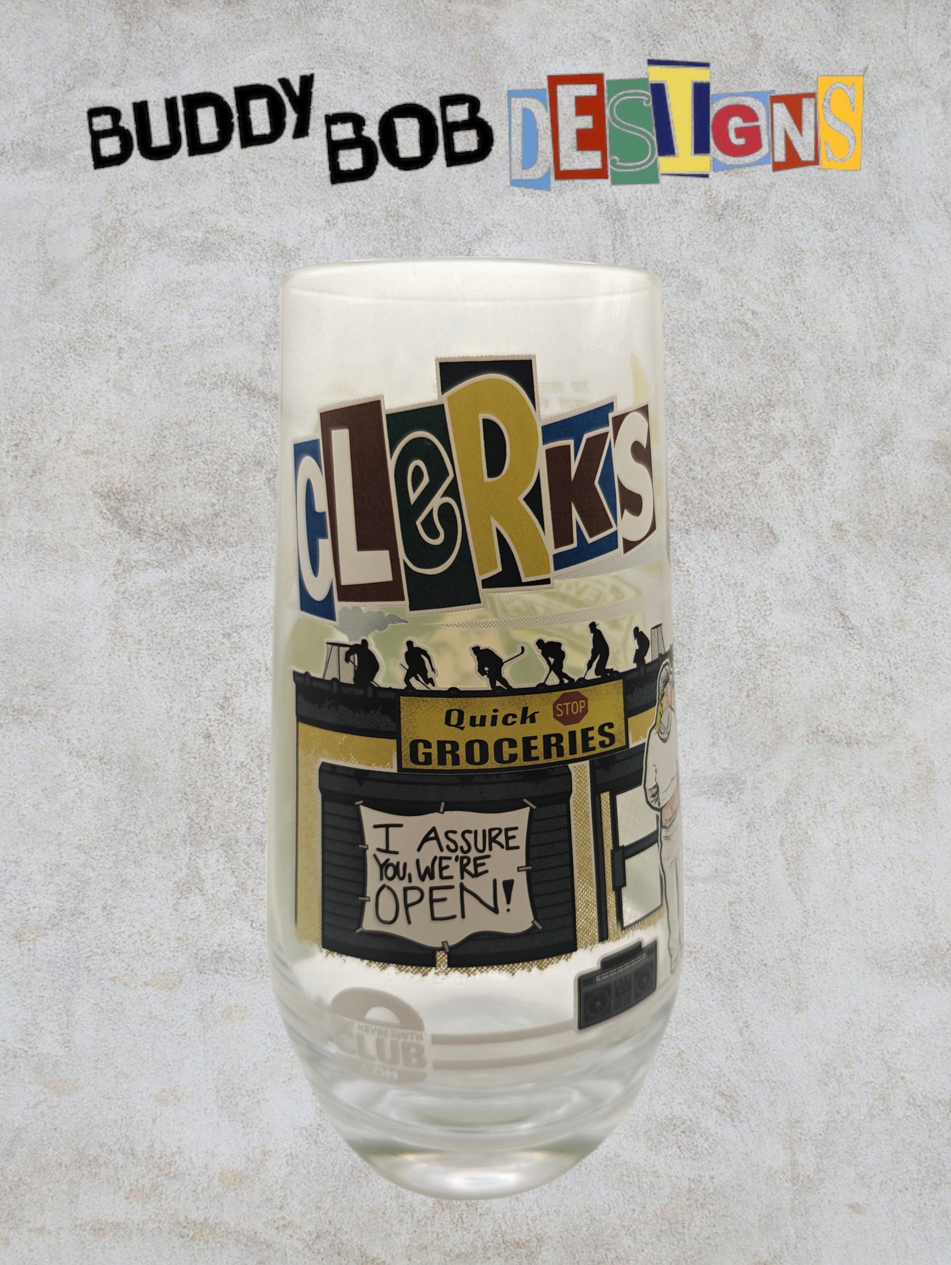 This Kevin Smith Club Exclusive Clerks Glass is a pristine collectible, brand new and still in its original box. Perfect for fans and collectors, it offers a unique piece of memorabilia from the Kevin Smith film that started it all, combining both display appeal and exclusivity. Its gorgeous artwork and limited availability make it a valuable addition to any Kevin Smith collection.